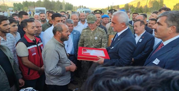 Şehidin babası Ahmet Selçuk'a Türk bayrağı veren Muş Valisi Avni Çakır, "Bundan sonra şehidimiz sadece senin evladın değil, 85 milyonun evladı. Çok zor. Allah sana sabrını verecek. Bir şehit babası olarak beratı ve bayrağı taşıyacaksın. Bundan sonra hepimiz senin ve ailenin emrindeyiz. Çocukların çocuğumuz, kardeşimiz. Allah şehidimizin mekanını cennet etsin." dedi.